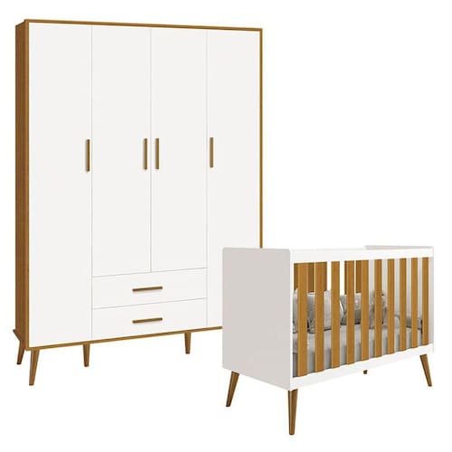 Berço Americano e Guarda Roupa Infantil 4 Portas Isis Branco Acetinado Savana - Reller