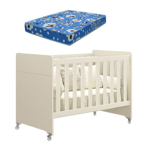 Berço Americano Evolution 4 em 1 Areia Acetinado com Colchão Ortobom- Reller
