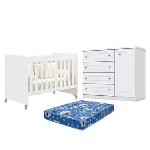 Berço Americano Evolution 4 em 1 Branco Acetinado Reller e Cômoda Americano Branco HP com Colchão Ortobom - Henn