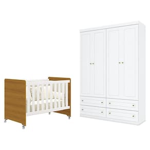 Berço Americano Evolution 4 em 1 Branco Acetinado Savana e Guarda Roupa Infantil Americano 4 Portas Branco - Henn