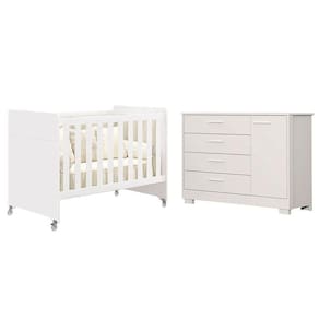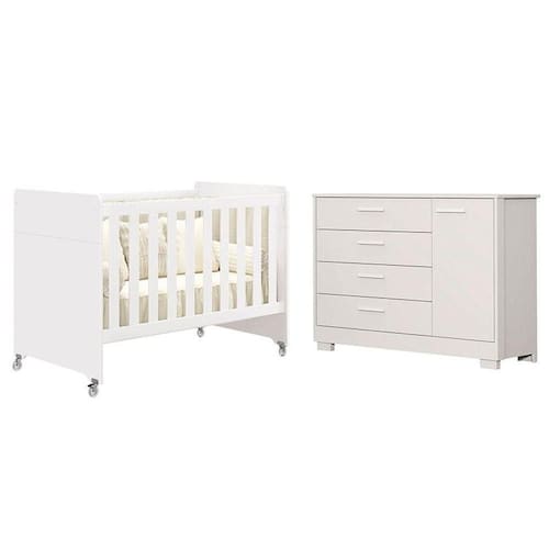 Começou a montar o quartinho do seu bebê? Então apresentamos para você este belo conjunto composto pelo berço da linha Evolution e a cômoda da linha Zaki. O berço quatro em um oferece versatilidade, acompanhando todas as fases de crescimento do seu filho, podendo ser utilizado como mini berço, sofá cama e mini cama. Com grade fixa, suporte para mosquiteiro e estrado com três regulagens de altura. Completando o conjunto, a cômoda complementa o conjunto. Possuindo uma porta, quatro gavetas equipadas com corrediças telescópicas, puxadores em MDF, pés em PVC e sistema de antitombamento, proporcionando mais estabilidade e . Fabricados pela Reller, são desenvolvidos em 100% MDF de alta qualidade. Ideal para deixar o ambiente mais acolhedor, unindo estilo, durabilidade e eficiência. Aproveite e garanta já o seu!