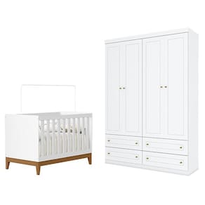 Berço Americano Flip Branco Acetinado Reller e Guarda Roupa Infantil Americano 4 Portas Branco HP – Henn