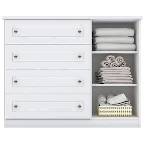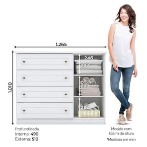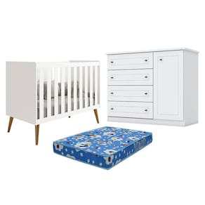 Berço Americano Isis Branco Acetinado - Reller e Cômoda Infantil Americano Branco com Colchão Ortobom - Henn