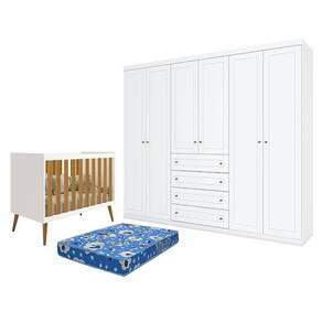 Berço Americano Isis Branco Acetinado Savana - Reller e Guarda Roupa Casal Americano 6 Portas Branco HP com Colchão Ortobom – Henn