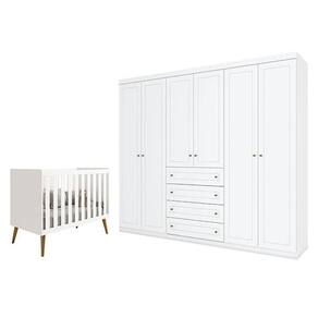 Berço Americano Isis Branco Acetinado Savana - Reller e Guarda Roupa Casal Americano 6 Portas Branco Henn