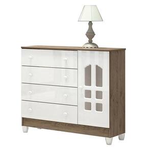 Cômoda Infantil 1 Porta Selena Branco Acetinado Amadeirado - Carolina Móveis