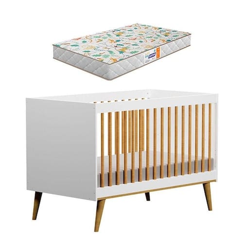 Berço Americano Ligia Branco Acetinado Bétula com Colchão Gazin - Carolina Móveis