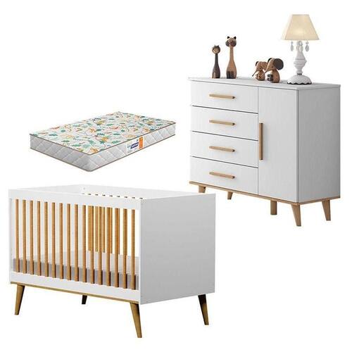 Berço Americano Ligia e Cômoda Ludmila Branco Acetinado Bétula com Colchão Gazin - Carolina Móveis