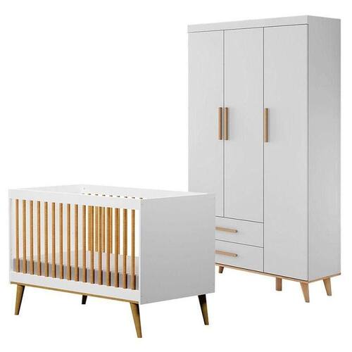 Berço Americano Ligia e Guarda Roupa Ludmila Branco Acetinado Bétula - Carolina Móveis