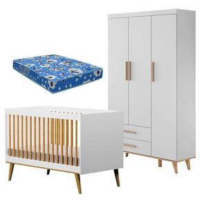 Berço Americano Ligia e Guarda Roupa Ludmila Branco Acetinado Bétula com Colchão Ortobom - Carolina Móveis