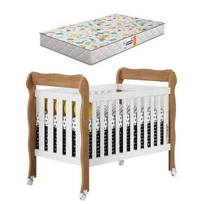 Berço Americano Lila Branco Acetinado Amadeirado com Colchão Gazin Carolina