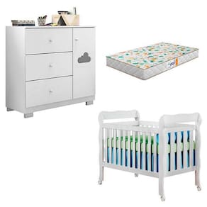 Berço Americano Lila e Cômoda Infantil Ane Branco Brilho com Colchão Gazin Phoenix Baby