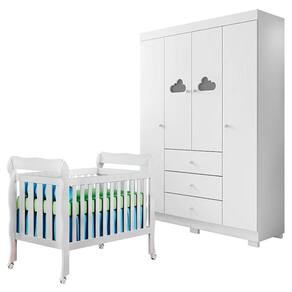 Berço Americano Lila e Guarda Roupa Ane Branco Brilho – Phoenix Baby