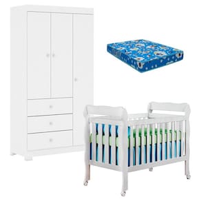 Berço Americano Lila e Guarda Roupa Duda 3 Portas Branco Brilho com Colchão Ortobom – Phoenix Baby