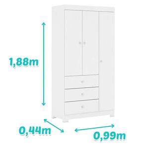 Guarda Roupa Infantil Duda 3 Portas Branco Brilho – Phoenix Baby