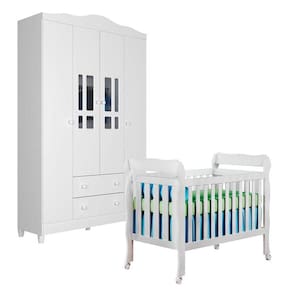 Berço Americano Lila e Guarda Roupa Infantil Ariel 4 Portas