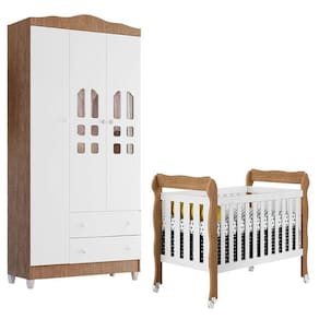 Berço Americano Lila e Guarda Roupa Infantil New Selena 3 Portas Branco Acetinado Amadeirado Carolina Móveis