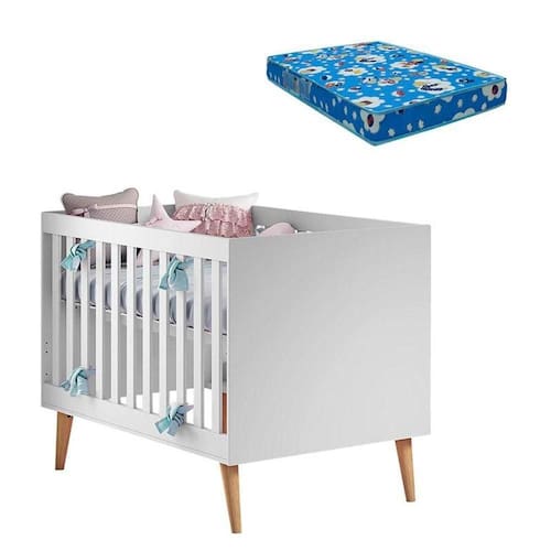 Berço Americano Ludmila Branco Bétula com Colchão - Carolina Baby