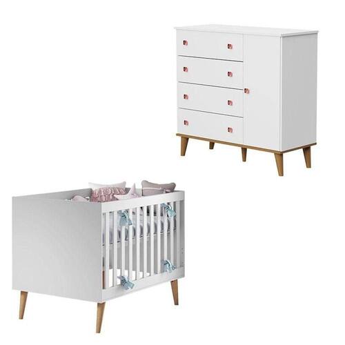 Berço Americano Ludmila e Cômoda Fernanda Branco Acetinado Bétula Carolina Baby
