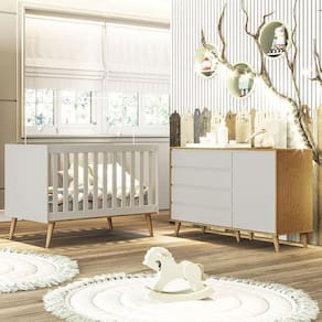 Berço Americano Ludmila e Cômoda Gran Lorena Off White Bétula – Carolina Baby