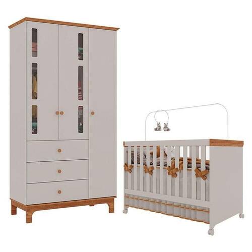 Berço Americano Mini Cama com Guarda Roupa Infantil Antonella 3 Portas Off White Caramelo - Canaã