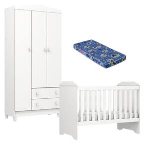 Berço Americano Mini Cama e Guarda Roupa Mel Flat Branco Brilho com Colchão Ortobom - Carolina