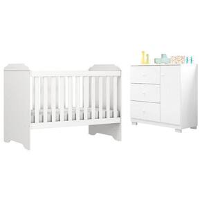 Berço Americano Mini Cama Mel com Cômoda Infantil Duda Branco Brilho Phoenix Baby