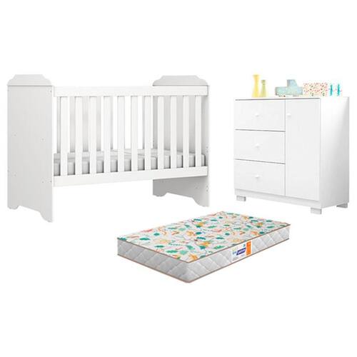 Está montando o quartinho do seu filho? Então apresentamos para você este belo conjunto composto pela berço americano mini cama da linha Mel acompanhado do colchão Gazin desenvolvido pela Carolina e a cômoda infantil da linha Duda desenvolvido pela Phoenix Baby. Possuindo ótimo conforto para seu bebê tirar um soninho e um ótimo espaço interno para a mamãe acomodar as roupinhas e acessórios do seu bebê. Fabricados com materiais de qualidade em MDP/ MDF garante mãos durabilidade e resistência, além de ser projetado para acompanhar todas as fases de crescimento de seu filho. Confira as características: