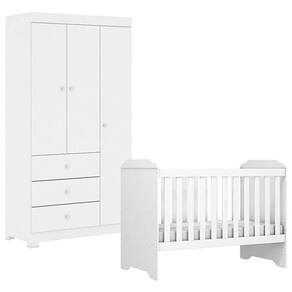 A mamãe começou a procurar os móveis para o quartinho do seu filho? Apresentamos para você este belo conjunto composto pelo berço americano da linha Mel desenvolvido pela Carolina e o guarda roupa 3 portas da linha Duda desenvolvidos pela Phoenix Baby. O berço vem com a opção de ser utilizado como mini cama, prolongando a sua vida útil. Completando o conjunto, o guarda roupa possui três portas e três gavetas, entregando toda comodidade para a mamãe guardar as roupinhas e acessórios. São fabricados em MDP/ MDF de qualidade, garantindo mais durabilidade e resistência. Esse conjunto será perfeito para quem deseja móveis que dure todas as fases de crescimento do seu bebê. Confira as características: