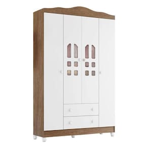 Guarda Roupa Infantil New Selena 4 Portas Branco Acetinado Amadeirado - Carolina Móveis