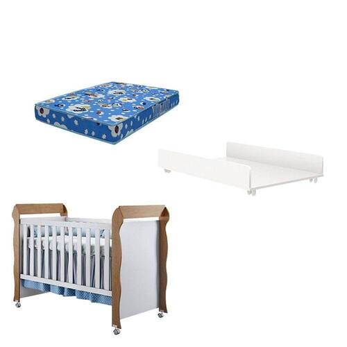 Berço Americano Mirelle com Trocador Juju Branco Acetinado e Colchão Gazin - Carolina