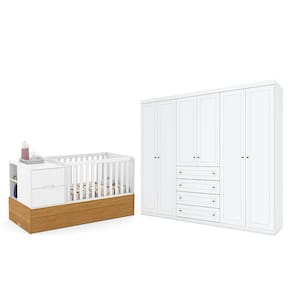 Berço Americano Multifuncional Formare Branco Freijó - Matic e Guarda Roupa Casal Americano 6 Portas Branco HP - Henn