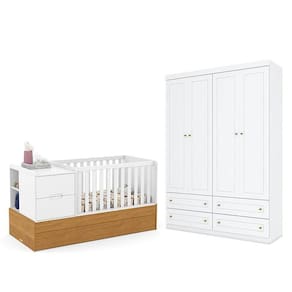 Berço Americano Multifuncional Formare Branco Freijó - Matic e Guarda Roupa Infantil Americano 4 Porta Branco HP - Henn