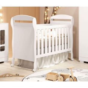 Berço Americano Provençal Danny Branco Brilho - Moveisaqui Sabe aquele móvel super elegante e romântico, que irá dar um super charme no cantinho so seu baby? O Berço Americano Dany - MóveisAqui é o móvel que falta no cantinho do seu bebê, proporciona conforto e , além de poder se transformar em sofazinho, para que possa ser utilizado após a transição do bebê.Dimensões do Produto Montado:Altura: 120 cmLargura: 148 cmProfundidade: 78 cmObservações:- Berço Certificado pelo INMETRO 006366/2018;- Transforma-se em sofazinho;- Padrão Americano;- Cantos arredondados;- 03 regulagens de altura do estrado;- Grade Fixa;- 04 Rodízios, sendo 02 Rodízios com trava;- Acompanha suporte para mosquiteiro;- Colchão Recomendado:130cm x 70cm x 12cm Densidade: D18 (colchão não incluso);- Pintura ultravioleta com acabamento brilho.