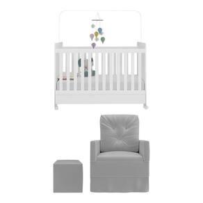 Berço Americano 3x1 Com Colchão, Poltrona Amamentação E Puff Bambino Multimóveis Mp4101 Branco/cinza Branco/cinza