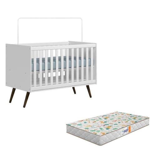 Berço Americano 3820 Retrô Branco Acetinado com Colchão Gazin Qmovi