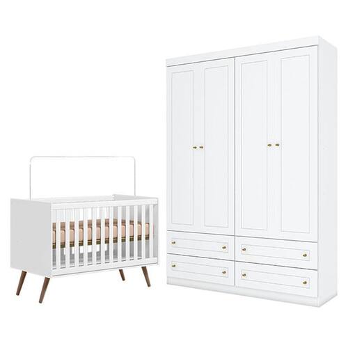 Berço Americano Q Encanto 3820 Retrô Branco Acetinado - Qmovi e Guarda Roupa Infantil Americano 4 Porta Branco HP - Henn
