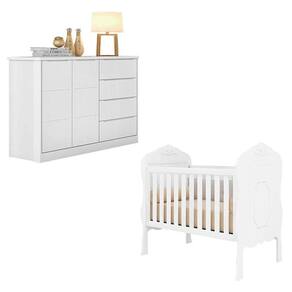 Berço Americano Realeza e Cômoda Infantil Blenda Branco Acetinado - Phoenix Baby