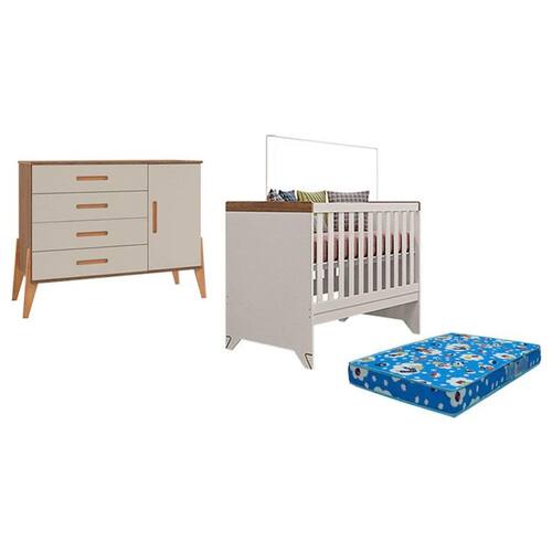 Berço Americano Retro Maya e Cômoda com Porta Emilly Off White com Colchão Ortobom - Canaã