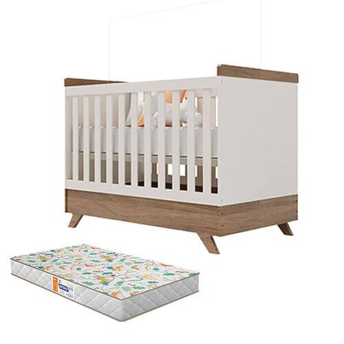 Berço Americano Retro Vitória Off White Carvalho com Colchão Gazin – Canaã