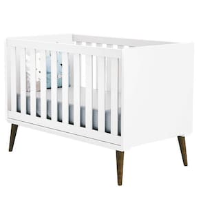 Berço Americano Theo Branco Acetinado com Pés Amadeirado – Reller