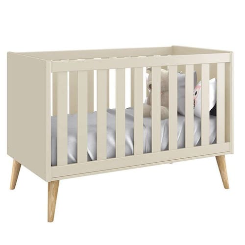 Berço Americano Theo Areia com Pés Madeira Natural - Reller