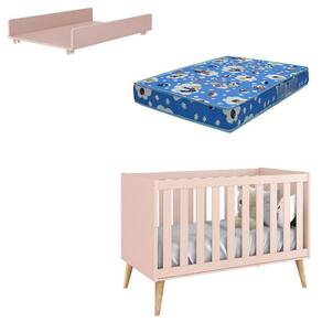 Berço Americano Theo com Trocador Juju Rosa Natural e Colchão - Reller