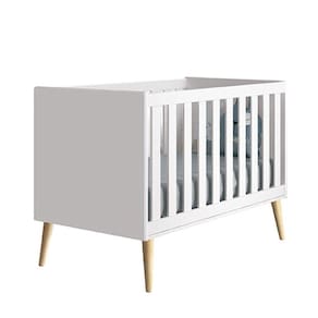 Berço Americano Theo Branco Acetinado com Pés Madeira Natural – Reller