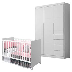 Berço Americano Tico e Guarda Roupa Infantil Eloá Branco Acetinado – Phoenix Baby