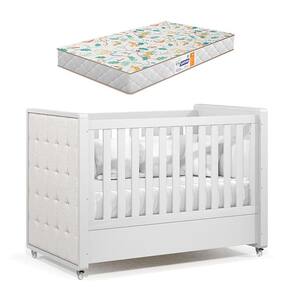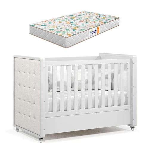 Berço Americano Tutto New Branco Acetinado com Capitonê New Boucle e Colchão Gazin - Matic
