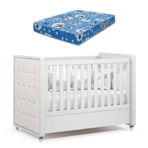 Berço Americano Tutto New Branco Acetinado com Capitonê New Boucle e Colchão Ortobom - Matic