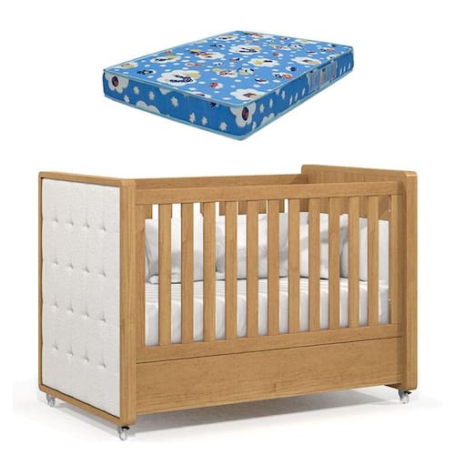 Berço Americano Tutto New Freijó com Capitonê New Boucle e Colchão Ortobom - Matic