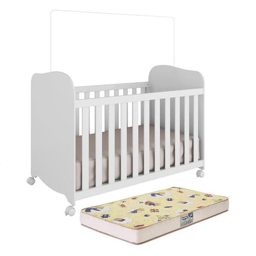 Berço Americano Uli com Colchão Supreme - Móveis Peroba O Berço Americano Uli é a escolha perfeita para garantir conforto e segurança nos primeiros anos do bebê. Produzido em MDF com pintura UV atóxica, possui certificado INMETRO, estrutura robusta e design funcional. Conta com 3 regulagens de altura do estrado, grades fixas e 4 rodízios (sendo 2 com trava), que facilitam a movimentação com praticidade. Compatível com colchão padrão americano 130 x 70 cm, acompanha suporte para mosquiteiro. E para completar o Colchão Supreme da Gazin vai proporcionar noites mais tranquilas a aconchegantes.