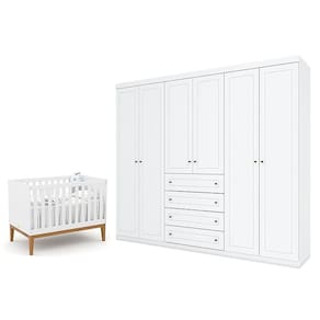 Berço Americano Unique Branco Soft Eco Wood - Matic e Guarda Roupa Casal Americano 6 Portas Branco HP - Henn